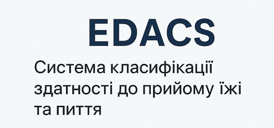 🧠 EDACS (Eating and Drinking Ability Classification System) — це стандартизована система класифікації здатності до прийому їжі та пиття у дітей і дорослих з нейрогенними розладами, зокрема при дисфагії, ДЦП, черепно-мозкових травмах, інсульті чи нейродегенеративних захворюваннях.